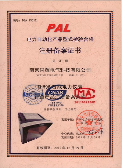 電力自動(dòng)化產(chǎn)品型式檢驗(yàn)合格注冊(cè)備案證書